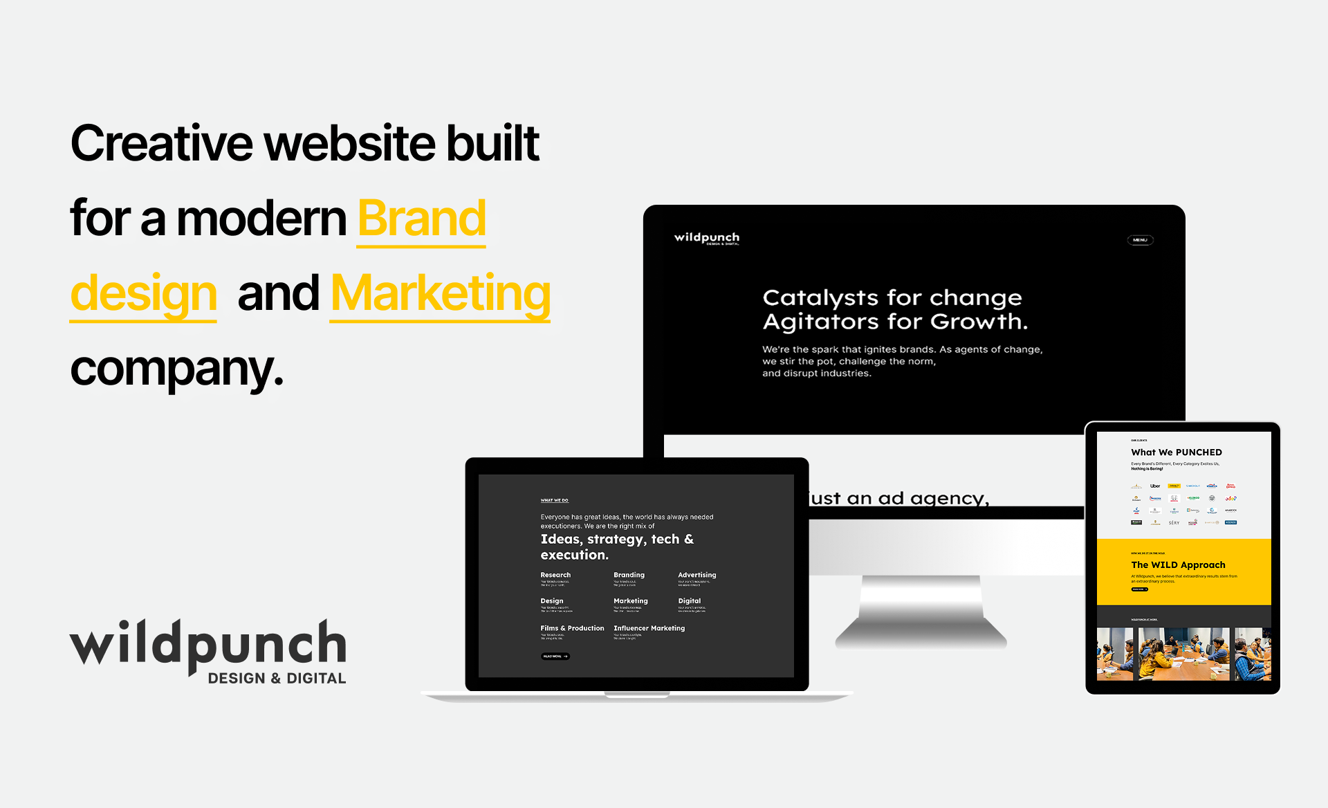 Wild Punch is a creative marketing company’s website built to highlight branding, digital marketing, and advertising services.