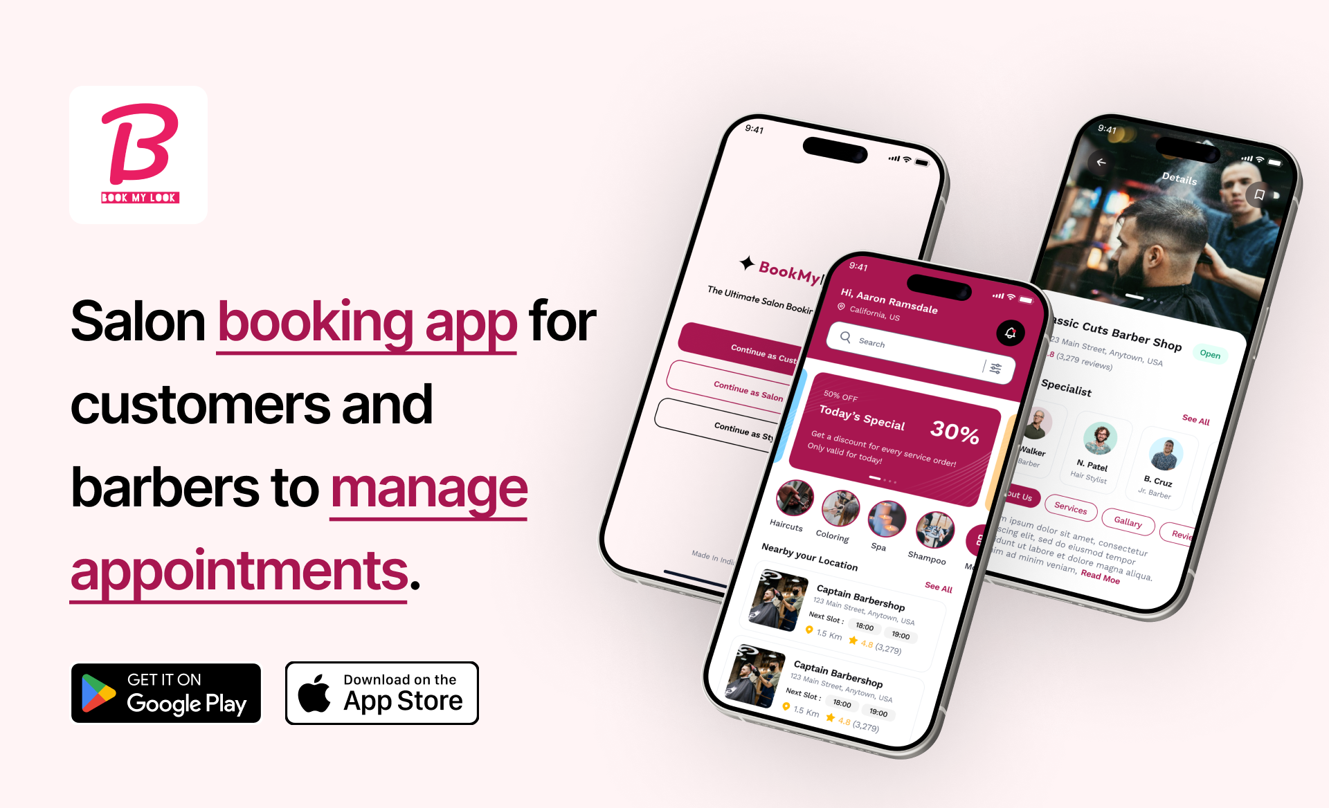 BookMyLook is a complete grooming service platform connecting barbers, salon owners, and customers on a single network.